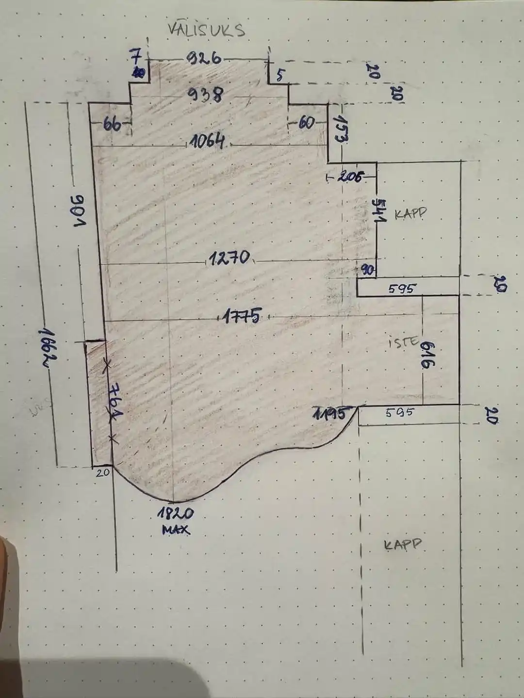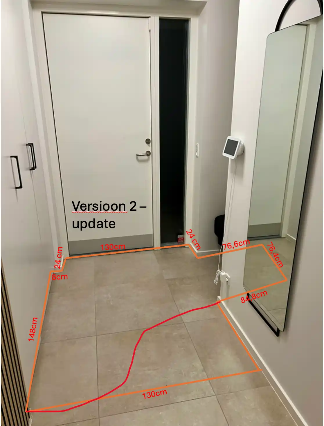 - Mõõda seinaäärest ning pane joonise peale vastava seina juurde kirja mõõdud.